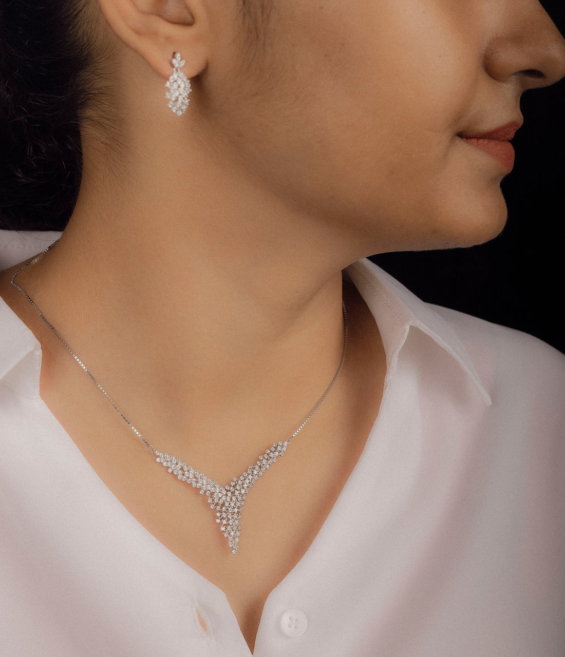 Pure Silver Necklace 9.25 Hallmark Anti Tarnish perfect for occasionally wear Studded With Zirconia Stones...