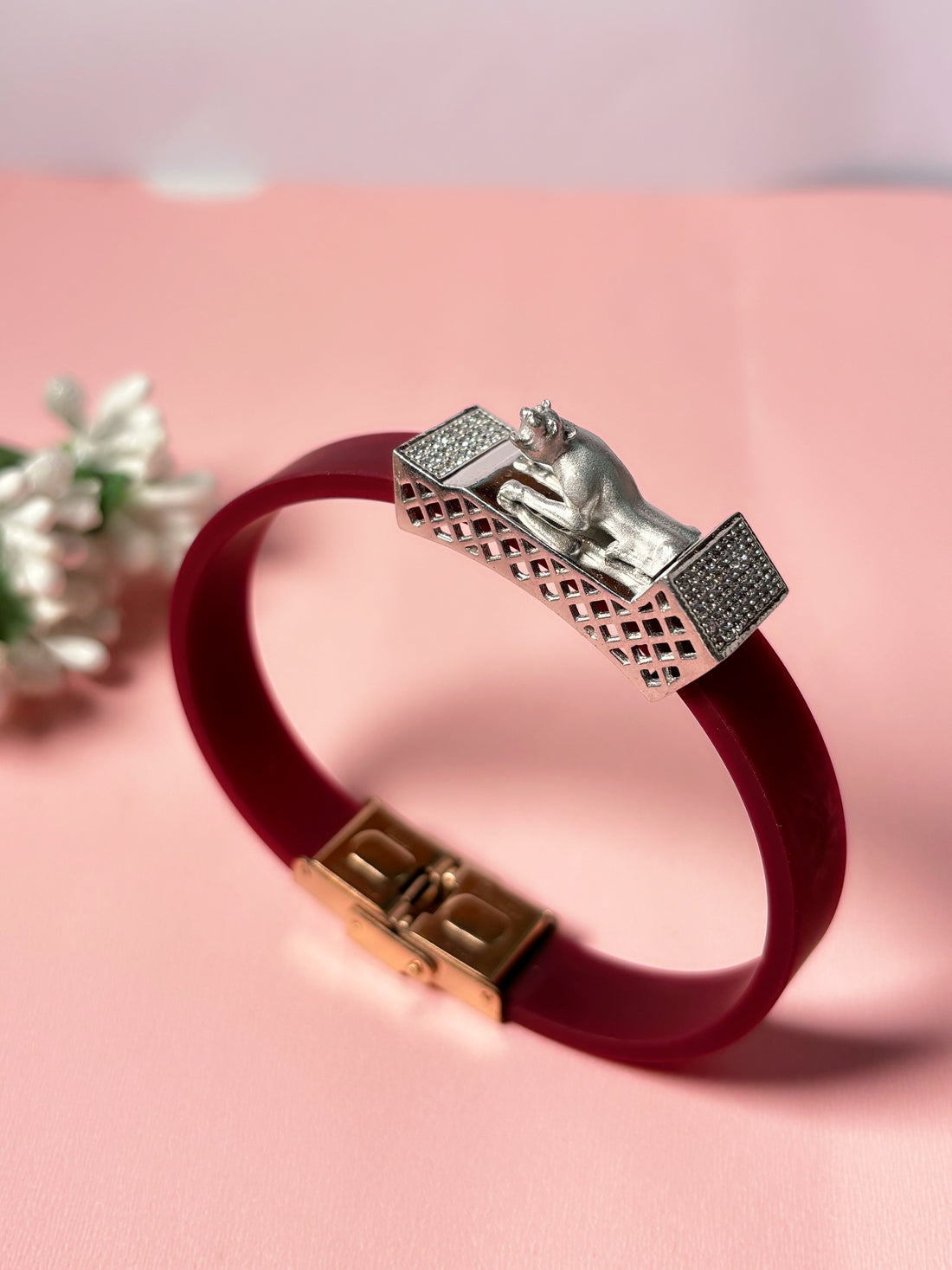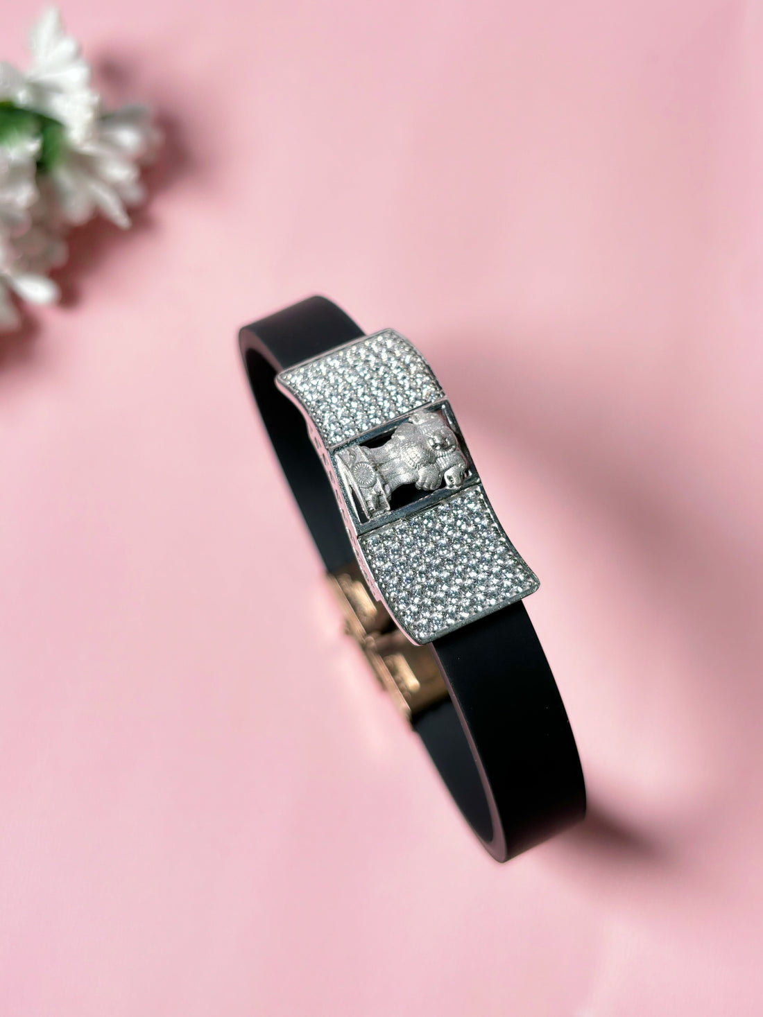 Pure Silver Bracelete  *  Belt : Heavy Quality of Silicon Belt  * Studded with Ziriconia...