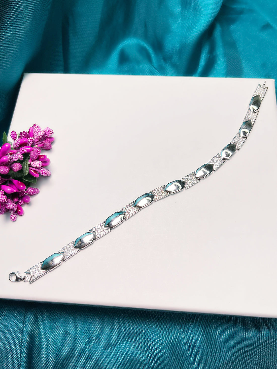 Pure Silver Mens Bracelete 92.5 Hallmark  Daily Wear  Anti Tarnish Studded with Zirconia Stones  Comes...